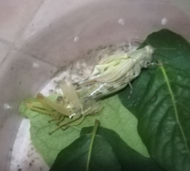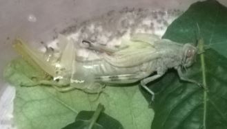 buongiorno a tutti, la mia curiosità per l'evoluzione delle locuste nella loro rasformazione completa mi ha indotto ad innumerevoli osservazioni sul campo...l'esito sempre negativo, nel senso che ho sempre perso la fase dell'ultima muta. Ieri pomeriggio sono riuscito a collocare all'interno di un secchio (opportunamente forato per il ricambio d'aria) un "grillo", e questi sono i risultati. Le foto, purtroppo, sono state scattate con un semplice telefonino Huawei uscito due anni fa.