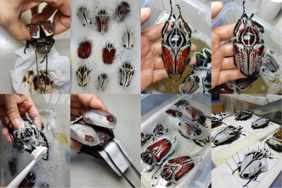 Diciamo subito che quel lavaggio non serve a "garantire" la durata dell'insetto, ma a togliere lo strato di sostanze organiche che spesso scurisce le aree pubescenti di questi insetti, come di altri. Non è un'invenzione del coreano, ma un sistema usato da molti, e se cerchi sul Forum vedi che ogni tanto ne abbiamo parlato.