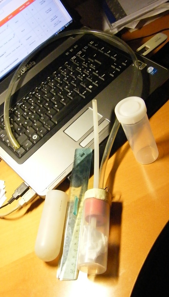 Daniele stesso usa il modello che dice Francesco. Ho avuto modo di vederlo in azione più volte, e funziona molto bene, ma personalmente preferisco il modello lungo e stretto, con tubo di aspirazione e "boccaglio" in linea, invece dell'altro tipo, che ha però il vantaggio che usa normali provettoni come contenitore, che possono essere sostituiti una volta pieni, semplicemente togliendoli e mettendoci un tappo, mentre col mio devo travasare il contenuto in altro barattolo (per fortuna ho trovato delle provette Falcon da 30 ml in cui entra perfettamente il tubo dell'aspiratore e mi permette il trasferimento senza rischi di fuga)
