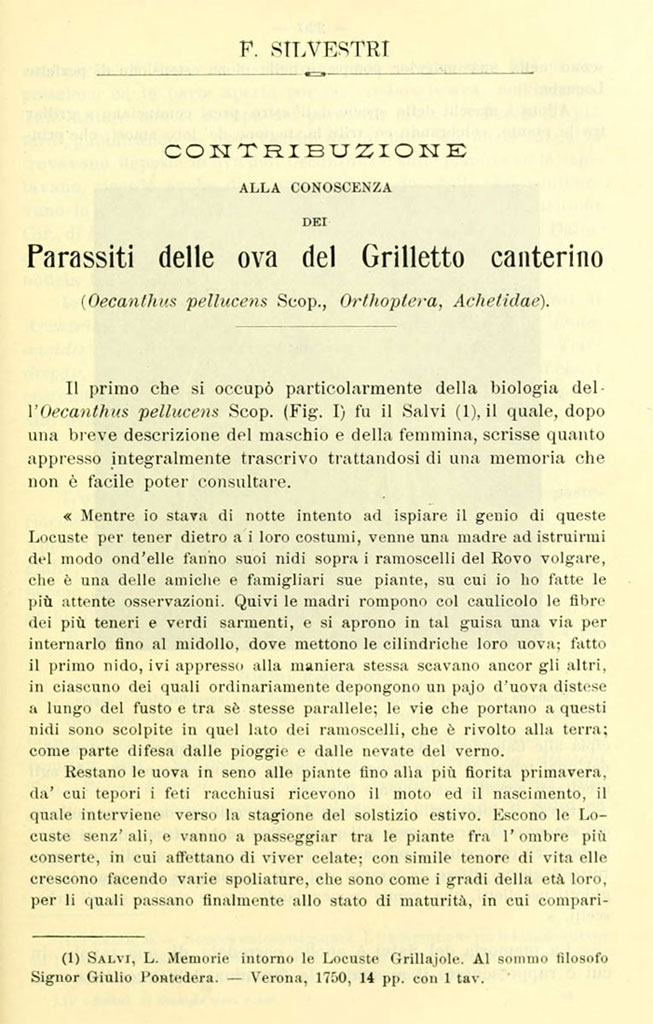 F. Silvestri - Contribuzione alla conoscenza dei Parassiti delle ova del Grilletto canterino