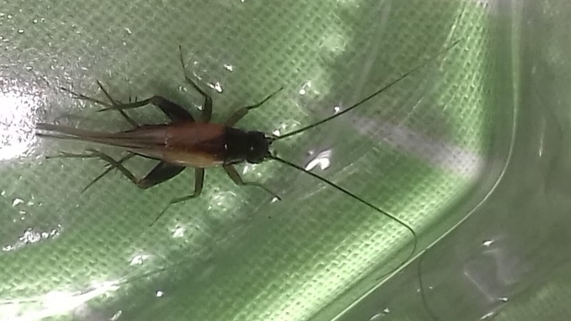 17/08/2019 Cervignano del Friuli (UD)Minuscolo Gryllidae forse il raro Stenonemobius gracilis cfr?Lunghezza incluse ali e ovodepositore circa 1cm
