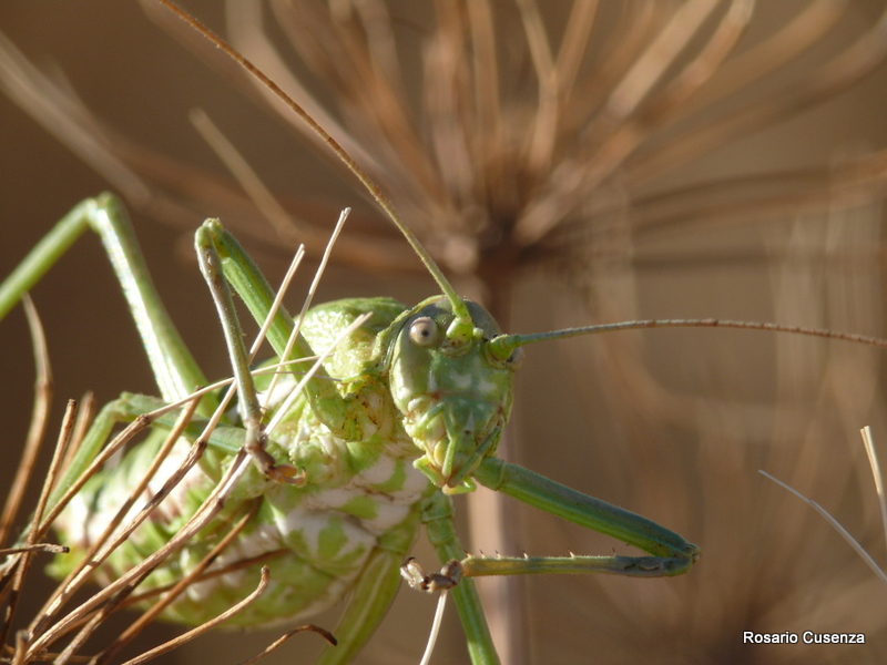 Non si tratta infatti di Saga pedo. Io non mi intendo di Ortotteri ma mi sembra un Epifiggerino. Quella struttura opalescente è lo spermatoforo. Veramente gigantesco :o !