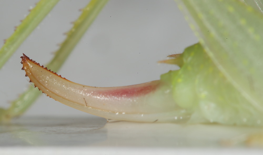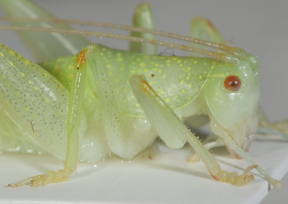12.IX.2010, Portoferraio (LI), centro storico.Sul cofano della macchina (provenivo da un bosco distante circa 7-8 km), probabilmente era rimasta attaccata, per farsi notare al mio arrivo. Io la trovo splendida!! Sempre che non abbia sbagliato la determinazione (di cui attendo la gradita conferma), dovrebbe trattarsi proprio di una bella femminuccia di Cyrtaspis scutata (Charpentier, 1825), uno dei pochi rappresentanti della famiglia dei Meconematidae (5 generi e 9 specie). Per me davvero un felicissimo rinvenimento!