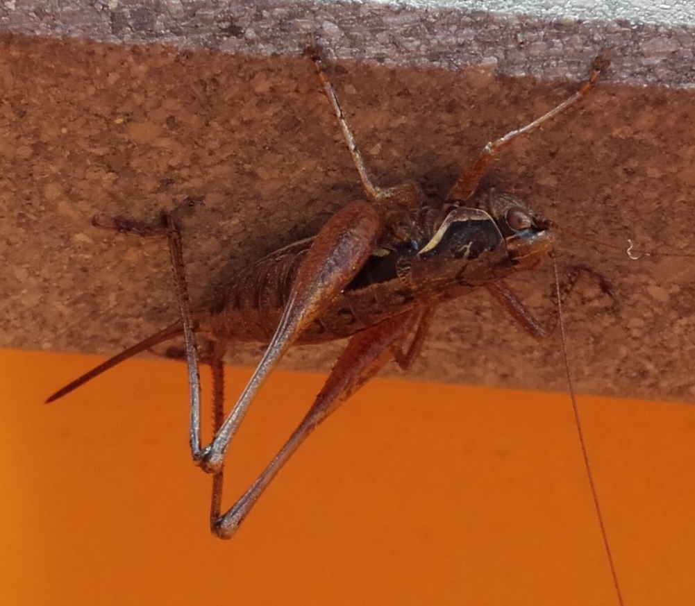 un altro grillo di dimensioni ragguardevoli, il corpo di almeno 2,5 cm; forse di più, ma tra zampe, ovopositore e lunghissime antenne è facile farsi ingannare... qualcuno ha tempo di dargli un'occhiata? Grazie!