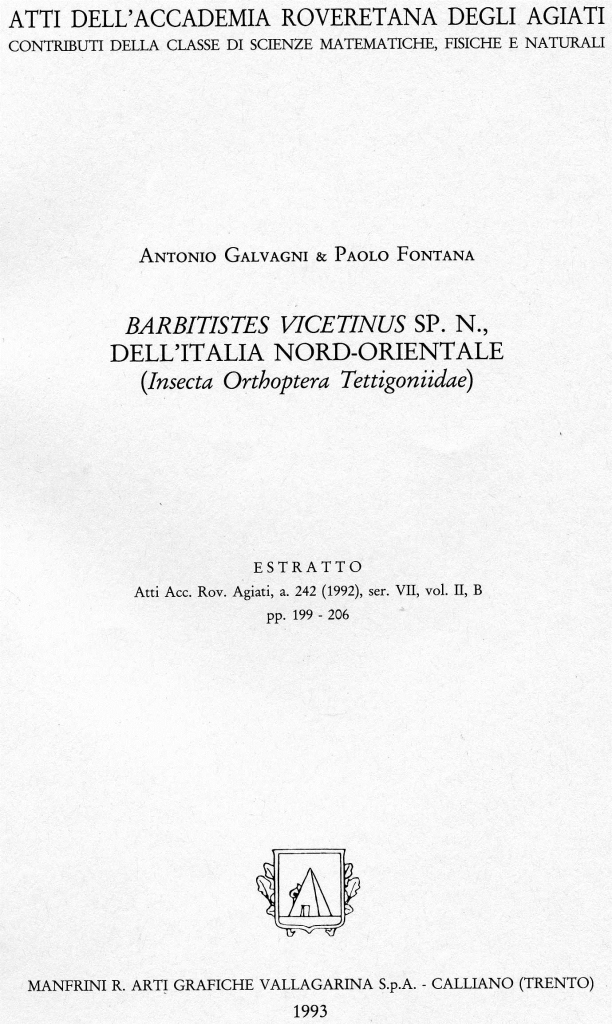 Barbitistes vicetinus Galvagni & Fontana, 1993
