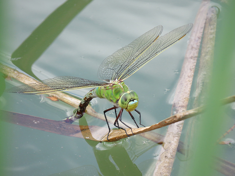 sì, femmina di Anax imperator Leach, 1815 - Aeshnidae in deposizione.
