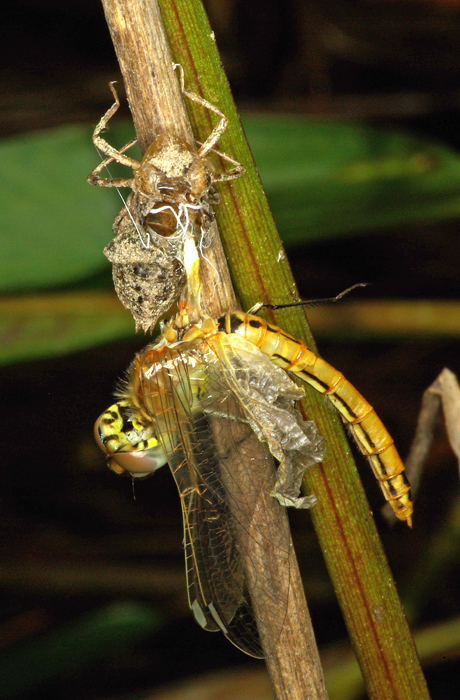 Esattamente quello che hai descritto, le ali posteriori non sono fuoriuscite bene dagli astucci alari, quella di sinistra è uscita in cattive condizioni, quella di destra proprio non ne ha voluto sapere e la libellula ha fatto un'orribile fine :sick: . Nella fase di sfarfallamento gli insetti sono estremamente delicati e l'esuvia non è così inconsistente per loro.