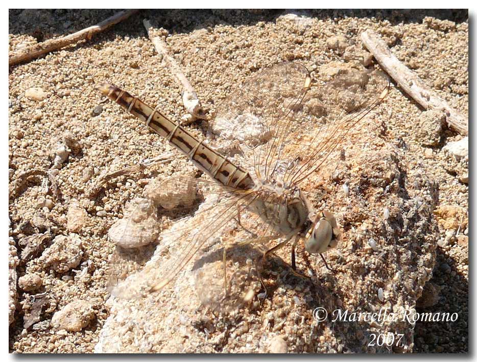 Il 15 settembre ho incontrato nei pressi dello stagno di Marina Maria, a sud di Olbia, una libellula che non avevo mai visto prima. Purtroppo non avendo la fotocamera non ho potuto fotografarla, ma, riconoscendo che si trattava di qualcosa di non usuale, ho tentato di catturarla con mezzi di fortuna (un cappellino) :cap: . Si è un po' rovinata, ma sono riuscito a prenderla.