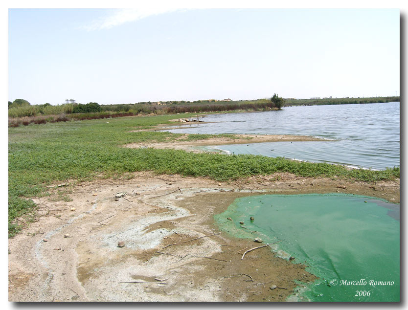 Lo specchio d'acqua dove ho fotografato la coppia mostrata più sopra e dove è presente un'abbondantissima colonia di questa specie, infatti, riportato "ufficialmente" come "Pantano Leone", è localmente noto col nome poco invitante e molto esplicativo di "acqui fitusi" (acque puzzolenti).