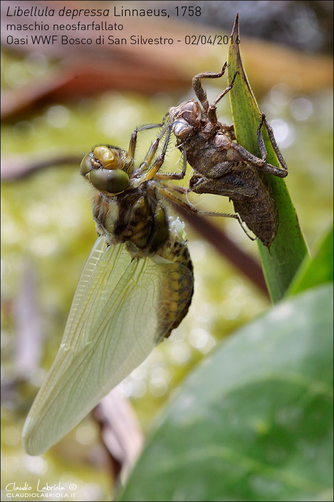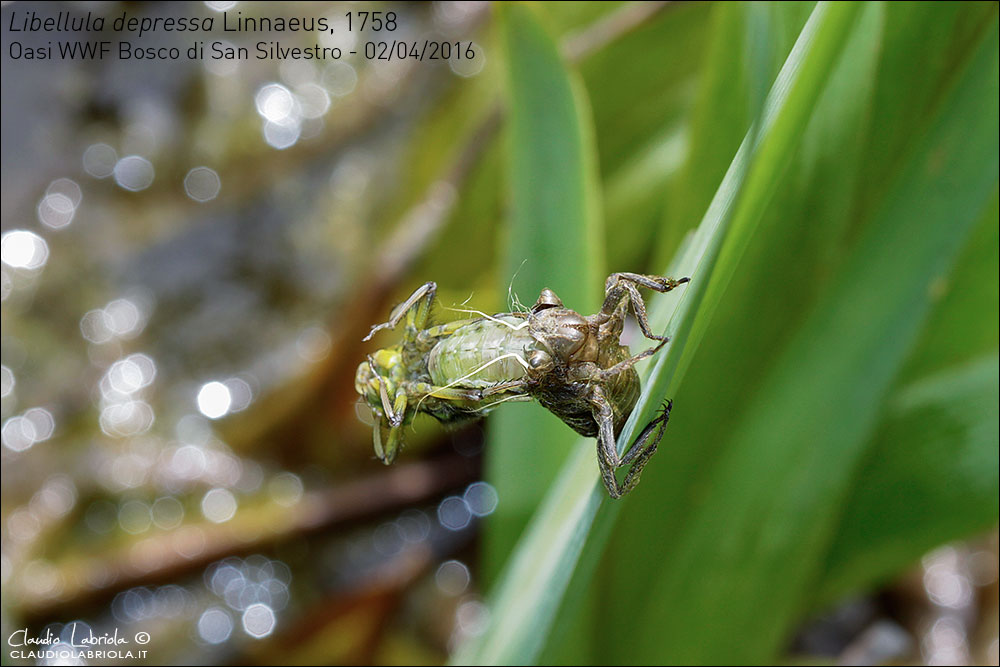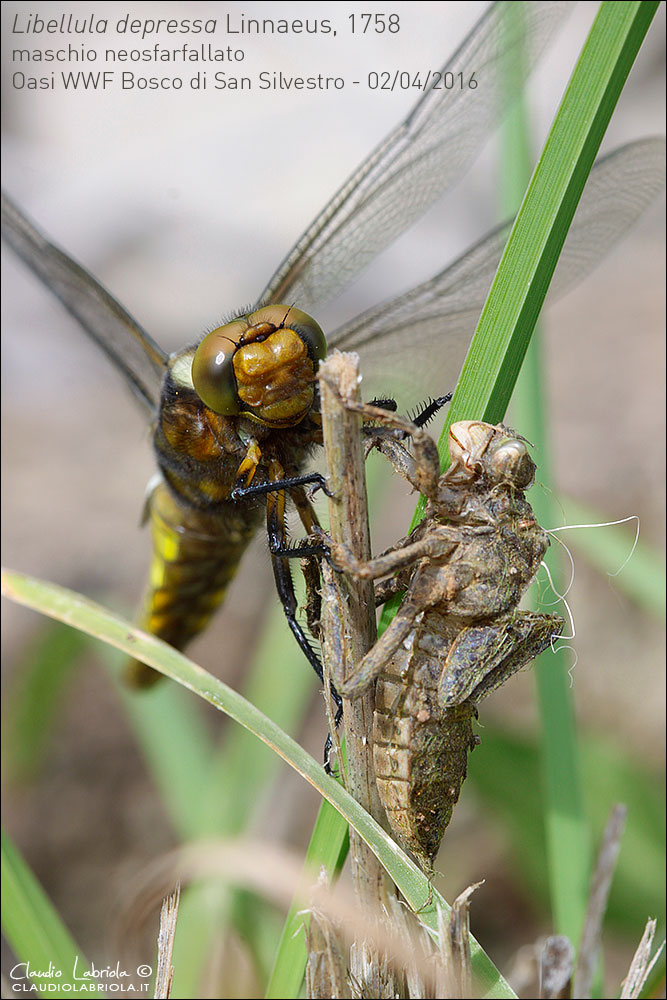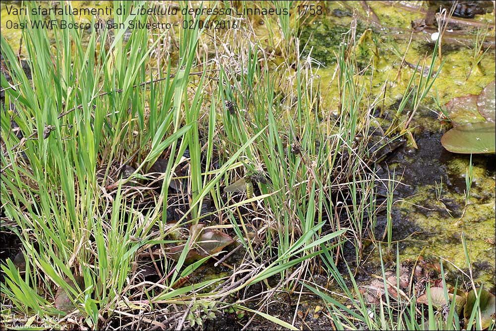 abbondante sfarfallamento di Libellula depressa Linnaeus, 1758, sabato mattina, 2 aprile 2016, all'Oasi WWF del Bosco di San Silvestro di Caserta.