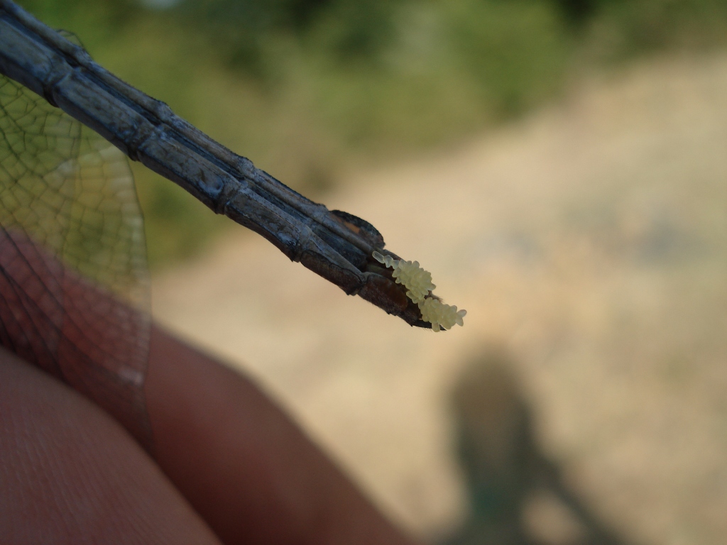 Sembrerebbe una femmina di O. coerulescens (aspettiamo però il parere di qualche odonatologo). Nella seconda foto si vede bene che sta buttando fuori un po' di uova. CiaoPiero |