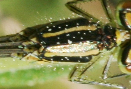 Ecco un dettaglio della prima foto, il margine postriore del pronoto é esattamente come dice Maurizio, pecccato credessi che le Coenagrion fossero soltanto blu.