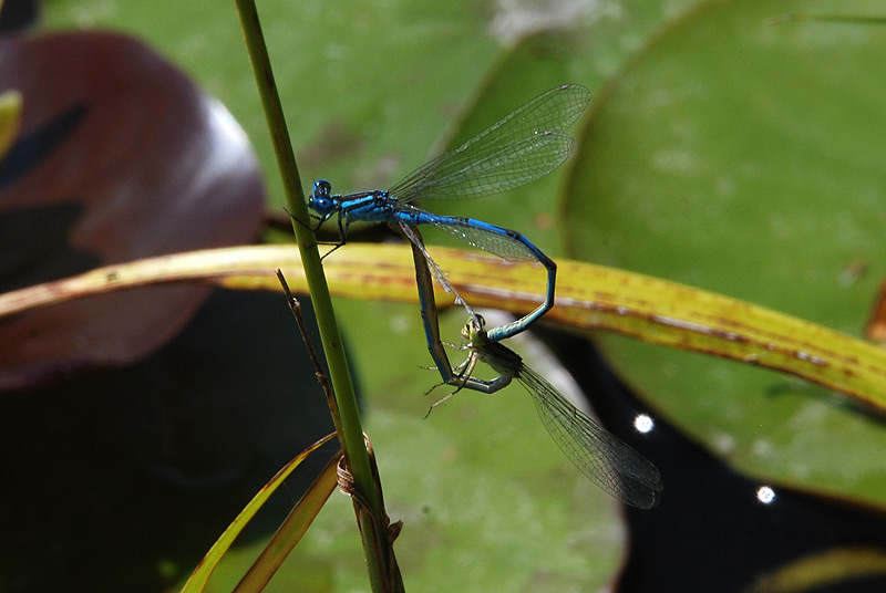 Ciao a tutti è possibile determinare questa coppia di Damigelle fotografate in un laghetto sulla piana di Assisi?