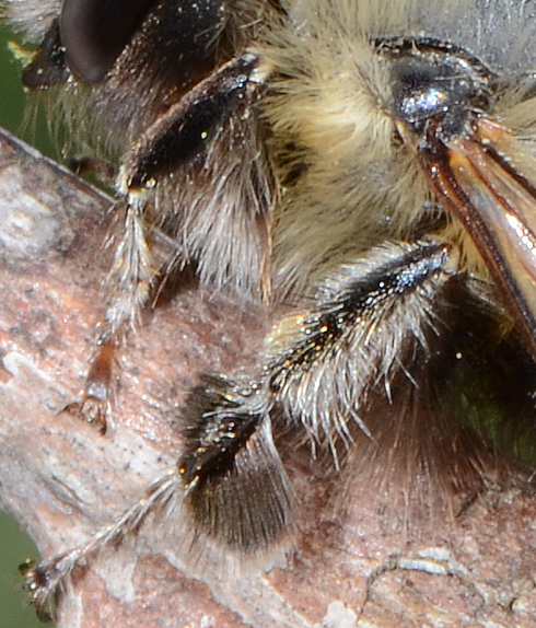Mi sembra che la tibia mediana abbia il ciuffo solo sul basitarso, potrebbe essere un'Anthophora retusa.