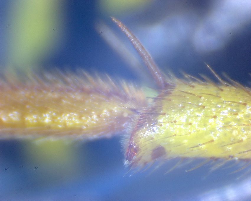 Verifica se all'apice della tibia 3, sul margine esterno, sono presenti due piccoli denti prossimi e ricurvi.