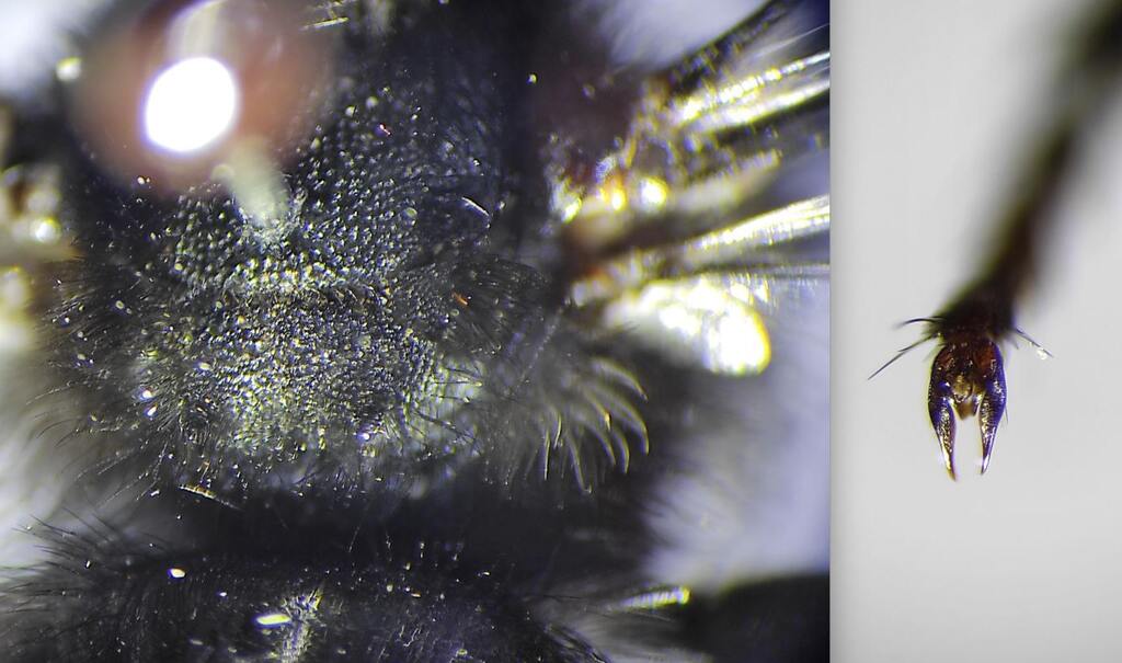 Purtroppo non sono in grado di fare una foto apprezzabile ma confermo che l'area dorsale del propodeum è punteggiata come lo scutello (al microscopio si vede bene, la foto la metto comunque, anche se di basso livello, giusto per completezza).