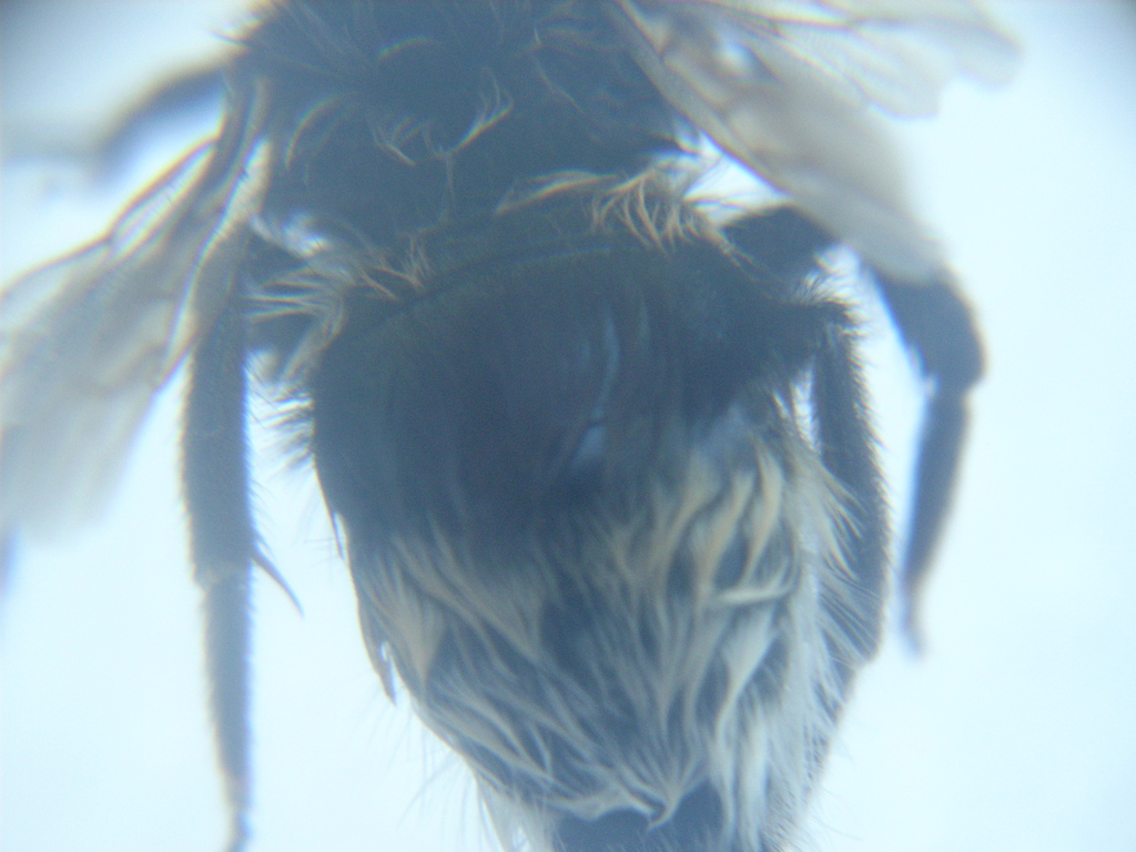 Ora mi sta venendo qualche dubbio sull'identificazione: ho notato che i tergiti non sono completamente ricoperti dai peli lasciando intravedere alcune parti lucide: caratteristica degli Psithyrus i bombi parassiti.