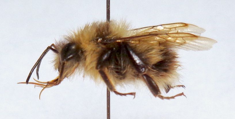 Tra i B. pratorum identificatimi da altri (con i genitali già estroflessi), questo maschio da me raccolto mi ha colpito per avere la punta del gastro a peli bianchicci e non rossi; un attento esame con chiavi sottomano, mi ha indotto a ritenere che appartenga alla specie jonellus, anche per le barbe mandibolari biancastre e non giallo dorate come in pratorum. I terminalia delle due specie sono molto simili ma mi pare, confrontandoli che in jonellus la spata sia tutta estremamente lucida (pochissimi micropunti), senza la microscultura a linee divergenti dalla bisettrice che si apprezza nella parte centrale in pratorum; il gonostilo appare apicalmente più rotondo e la volsella è quasi tutta nascosta dai gonostili, mentre è un po' più visibile in pratorum . Comunque le due differenze nella colorazione di gastro e barbe mandibolari sarebbero diagnostiche e le differenze negli apparati mi sembra di coglierli anche nelle foto del web. Purtroppo ho solo questo esemplare di jonellus quindi altri pareri sarebbero graditi.