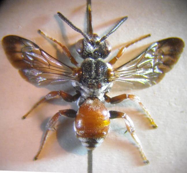 Ciao Pietro, grazie per le indicazioni. Pietro Niolu ha scritto: un dettaglio dorsale dell'apice dell'addome (tergite 6) Non ha caratteri particolari. Pietro Niolu ha scritto: un buon dettaglio del post-scutello (saliente? Senza o con dente smusso o acuto?) Senza denti. Pietro Niolu ha scritto: e quella che sembra una doppia gibbosità dello scutello Sì, come nel genere Nomada. Domani preparo alcune fotografie dei caratteri che hai indicato. Giuseppe