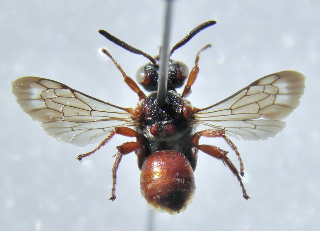 Ciao Pietro, grazie per le indicazioni. Pietro Niolu ha scritto: un dettaglio dorsale dell'apice dell'addome (tergite 6) Non ha caratteri particolari. Pietro Niolu ha scritto: un buon dettaglio del post-scutello (saliente? Senza o con dente smusso o acuto?) Senza denti. Pietro Niolu ha scritto: e quella che sembra una doppia gibbosità dello scutello Sì, come nel genere Nomada. Domani preparo alcune fotografie dei caratteri che hai indicato. Giuseppe