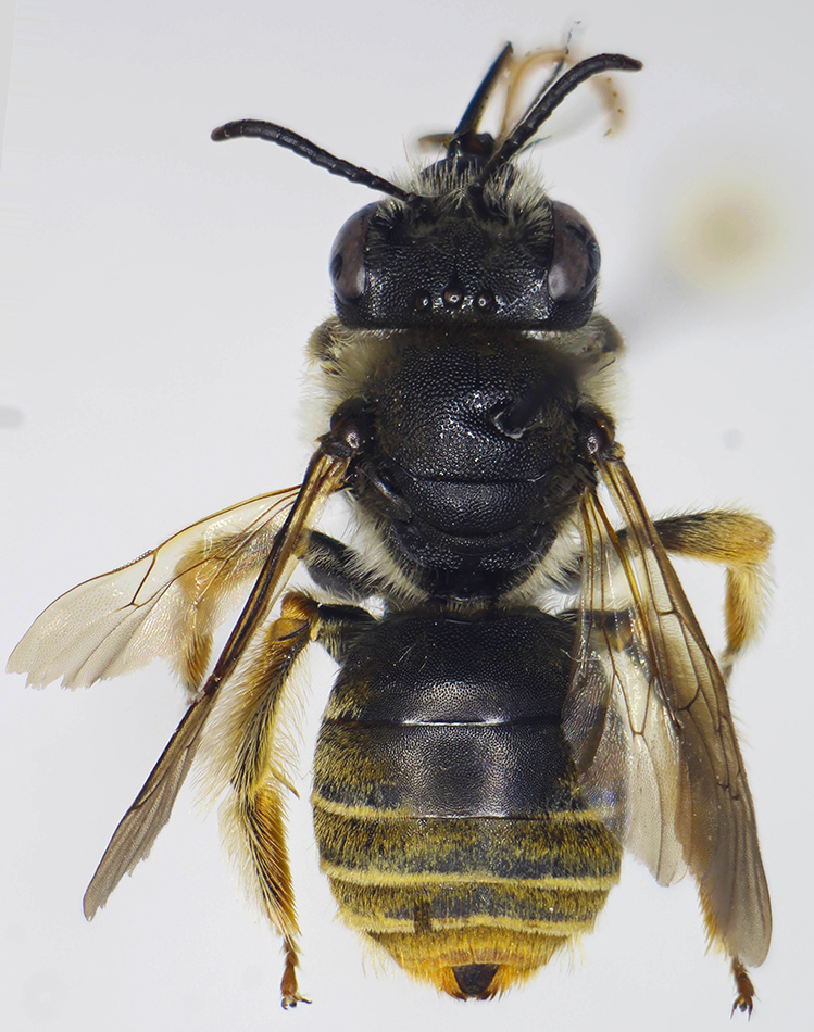 Questa è probabilmente la più piccola Eucera italiana, non a caso un suo sinonimo è Eucera parvula. La femmina si riconosce facilmente per le piccole dimensioni e per la peluria dell'addome, presente solo ai lati sui primi due tergiti e molto densa sui tergiti successivi, con delle sottili bande più chiare. 8mm |