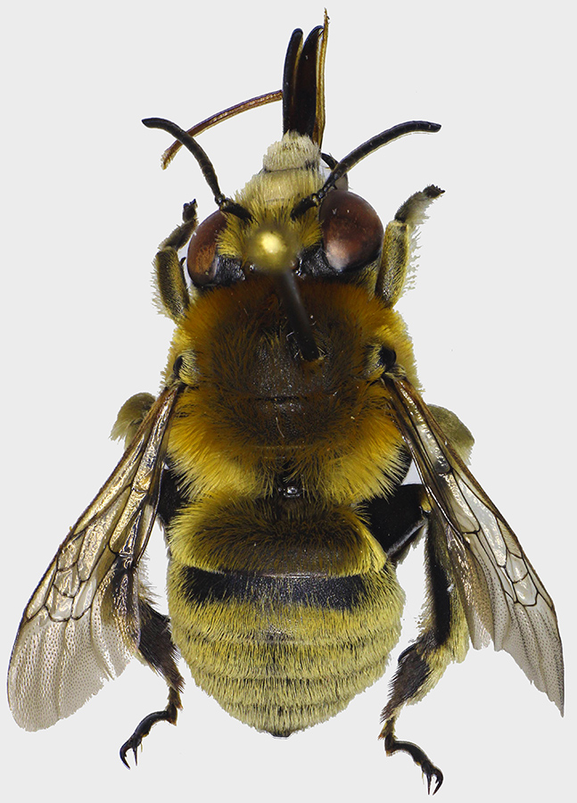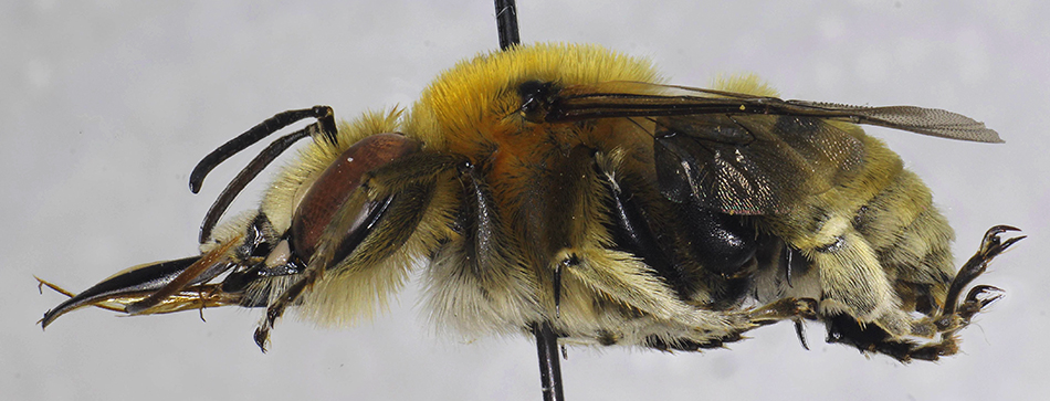 Una bella e poco comune Anthophora ad ampia distribuzione nel paleartico, ma in Italia nota solo di Lazio e Sicilia. L'anno scorso ne raccolsi una femmina, mentre quest'anno ho trovato alcuni maschi mentre dormivano su steli di graminacee. 13mm |