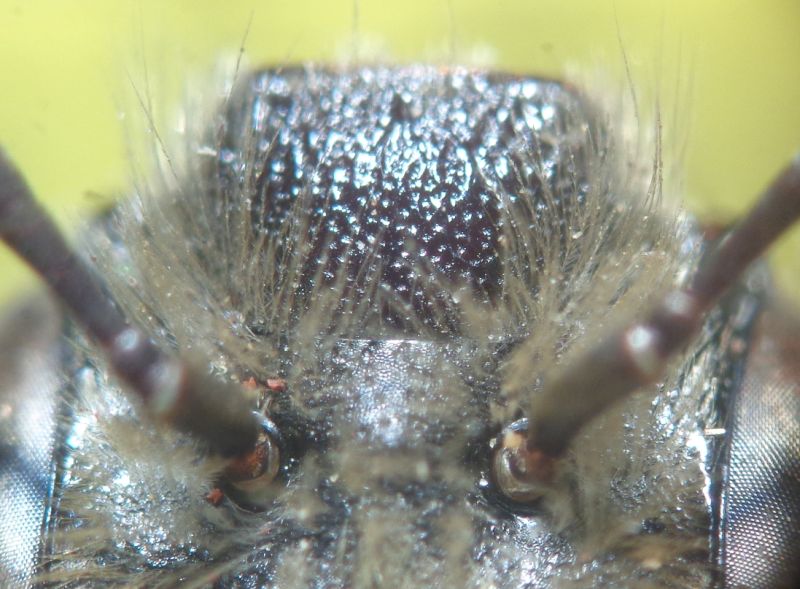 Quanto ai caratteri citati posto alcune vedute (dall'alto in basso nell'ordine) di tarso dx esterno e tarso sinistro interno (con antenna visibile) più il clipeo. Non mi pare di vedere "punte" nelle posizioni citate, ma qualche spinetta c'è. Grazie per l'attività assidua. :lov2: