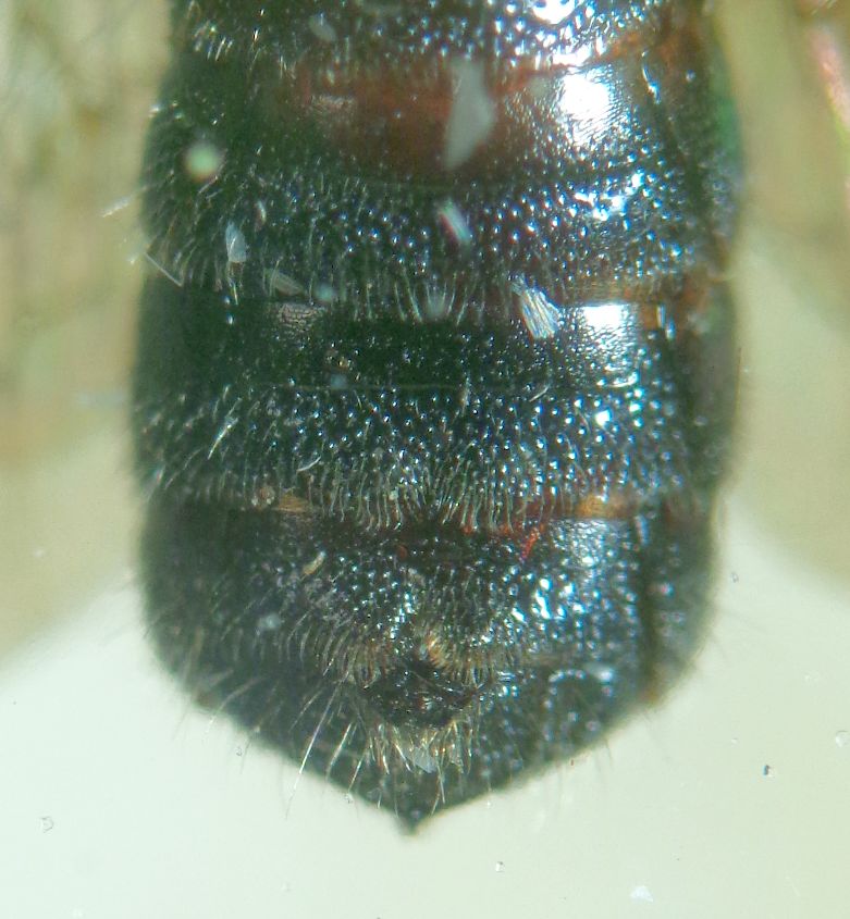 Ciao Giorgio, sembrerebbe un maschio di Ceratina cyanea, controlla se l'S7 ha una intaccatura al margine e vedi se i peli del femore e della tibia sono più lunghi della massima larghezza degli stessi. Mattia