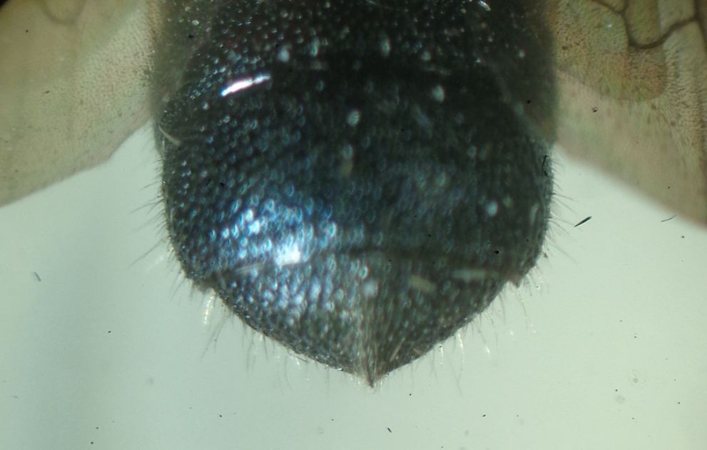 Altro esemplare maschio di mm 6 ca, a netta colorazione blù. 7° tergite piccolo, sottostante il precedente che è carenato al centro.