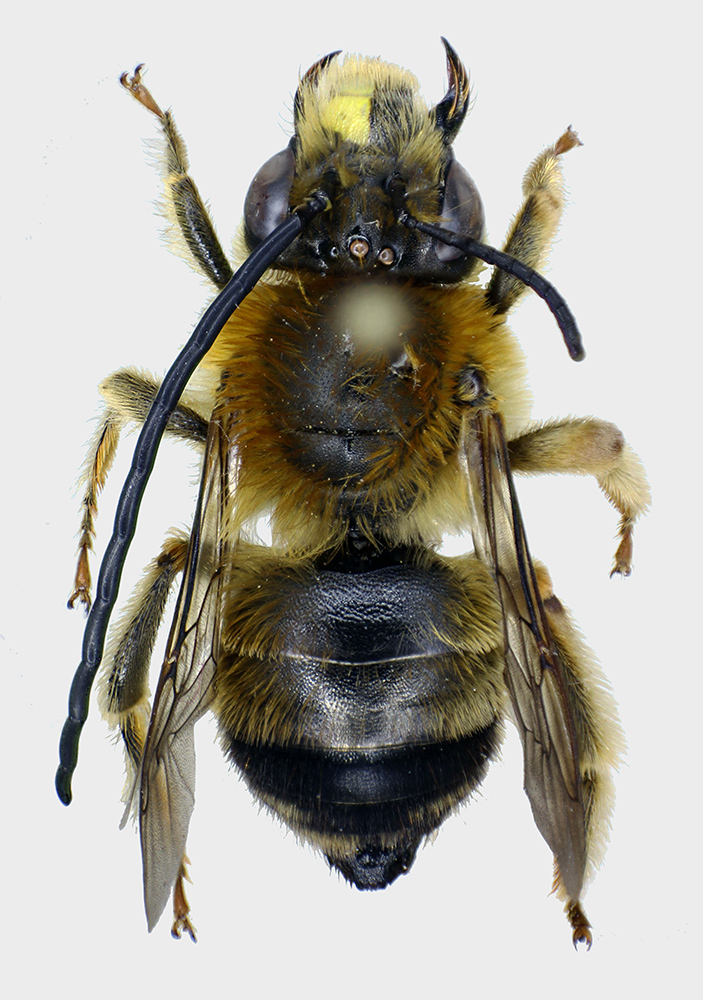 Un bel ritrovamento di una decina di giorni fa, un ginandromorfo bilaterale quasi completo di Eucera nigrescens.