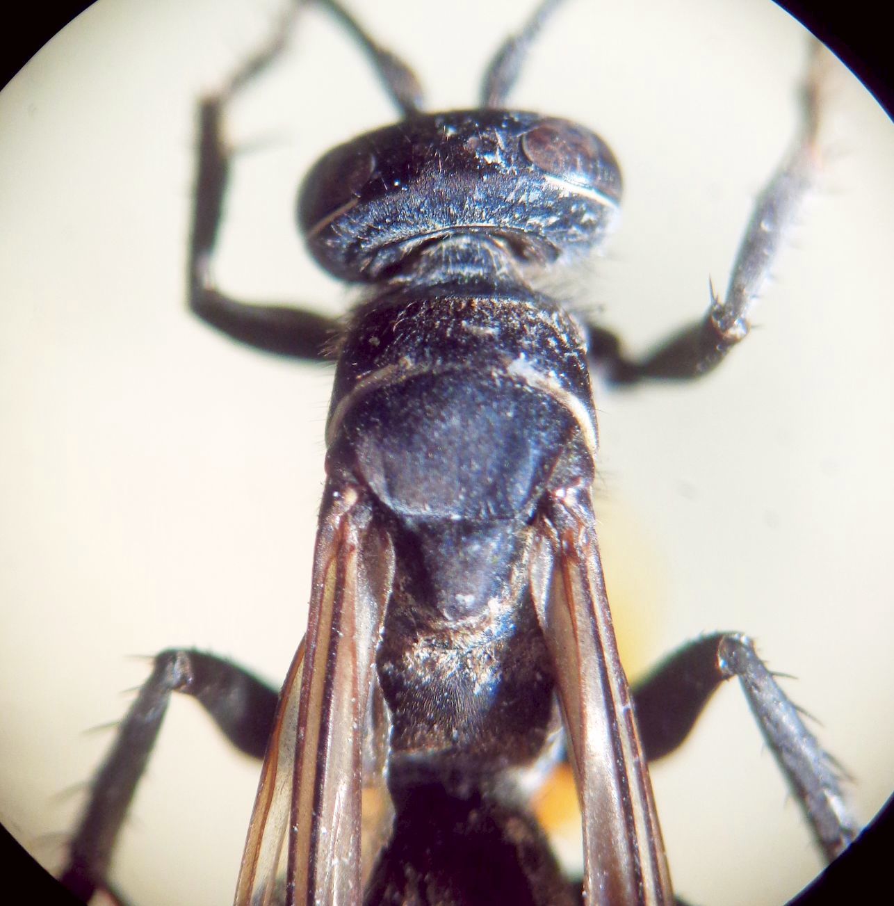 Visto che ho postato E. rufipes, posto anche questa specie mancante nel Forum: esemplare femmina di mm 13, det. G. Pagliano il quale mi disse trattarsi della prima segnalazione per l'Emilia-Romagna e come tale la segnalai sul Quaderno della Soc. st. nat. della Romagna. Ho anche un esemplare maschio di Castenaso (BO), leg. L. Colacurcio, 4-14.IX.2018, con zone bianche ridotte e col solo terzo tergite maculato. I caratteristici peli squamiformi delle specie del genere sono distribuiti dal metanoto al primo tergite. Zampe nere ma le metatibie in entrambi i sessi portano basalmente una macchia bianca allungata.