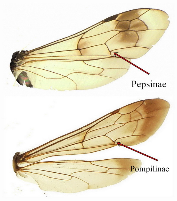 Cryptocheilus --> Sottofamiglia Pepsinae: seconda cella sub-marginale con tasca basale; spine all'apice delle tibie (non gli speroni) di taglia irregolare e diseguali; nessun solco trasversale sul secondo sternite.