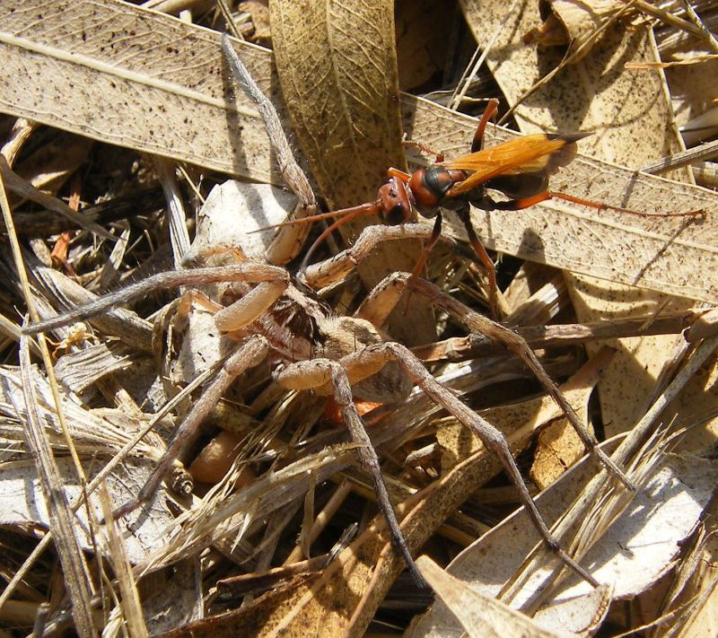 Scatti che avevo messo nel dimenticatoio e che mi sono ritrovato per caso. Questo colorato imenottero (pompilide?) "trasportava" via il ragno (presumibilmente dopo averlo immobilizzato con una puntura). A memoria misurava 2 cm circa. E' possibile sapere di chi si tratta? Grazie a tutti.