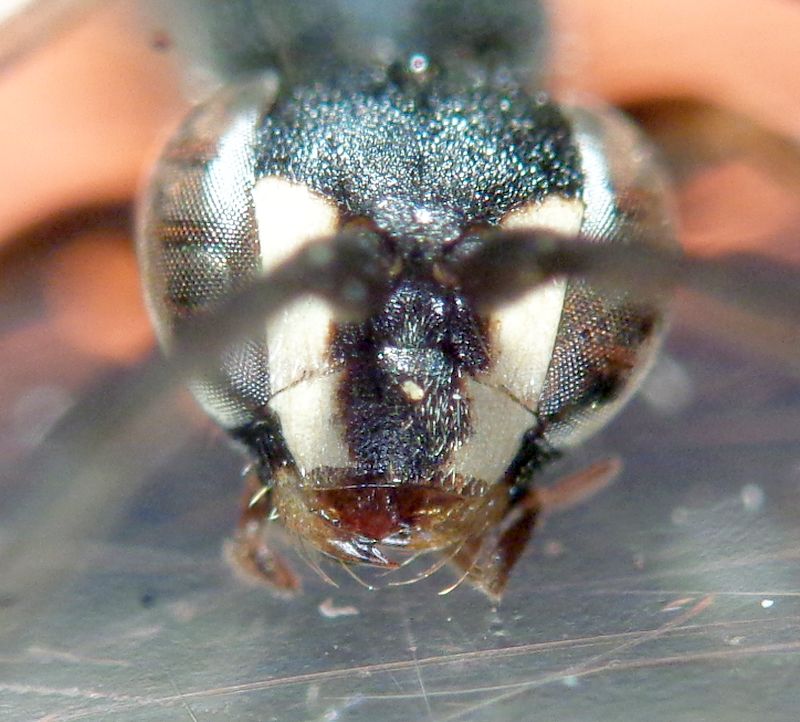 albilabris (foto 1/3): (foto non ottimale per capo reclinato) macchie frontali non estese in alto oltre i toruli, in basso non del tutto contigue alle macchie sul clipeo; mandibole con estesa macchia bianca basale;