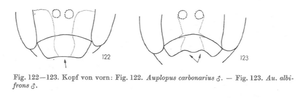 Anche la forma del margine clipeale è diversa: in carbonarius è quasi diritto, appena appena concavo, in albilabris è bisinuoso, il lobo centrale arretrato, cosa evidente anche in Faune de France.