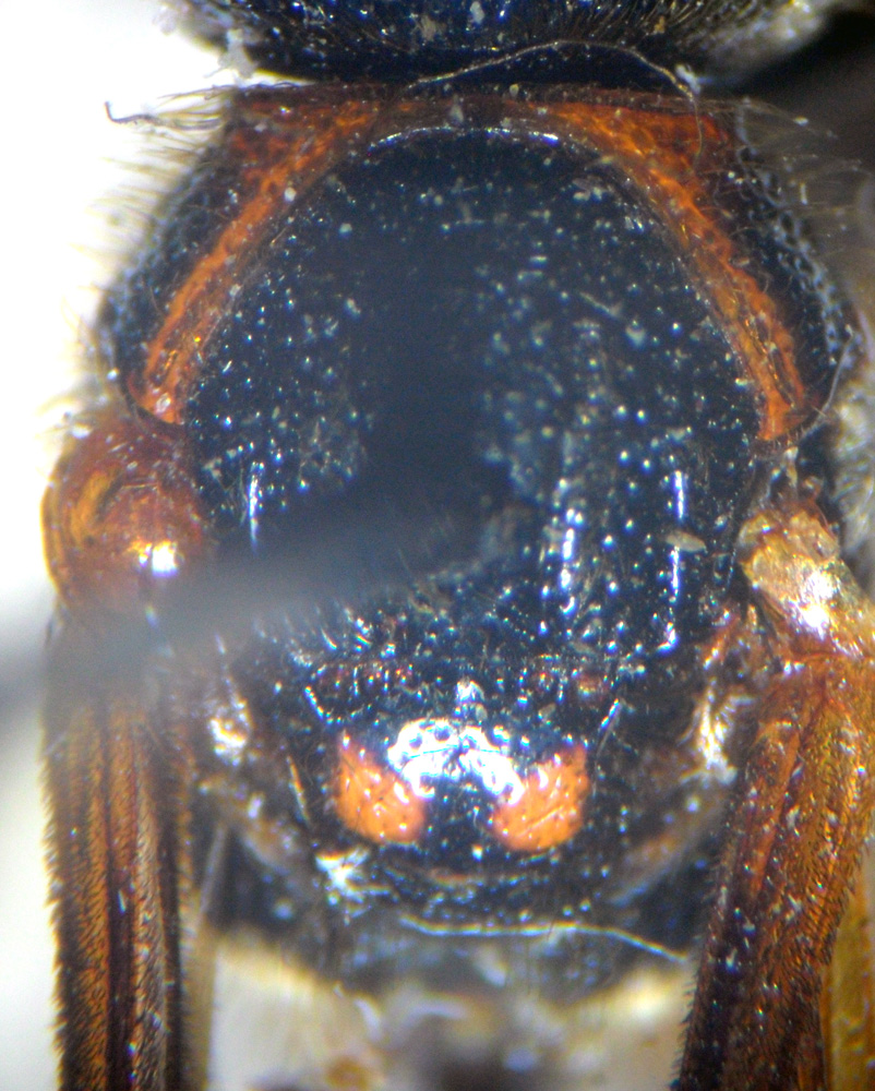 All'interno del gruppo si riconosce per la presenza di chiazze arancioni sul torace e per la lamella apicale del terzo tergite poco distinta dal resto del tergite.