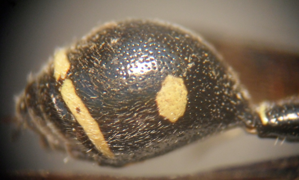 Nell'esemplare qui ritratto il peziolo è completamente nero con una sottile fascia apicale gialla e il clipeo è giallo solo nella parte basale, in un altro esemplare ricevuto uno o due anni fa il peziolo ha due macchie allungate laterali e il clipeo è interamente giallo con una fascia nera orizzontale mediana; penso sia semplicemente un esemplare più colorato dato che la struttura, la punteggiatura e la pelosità coincidono perfettamente.
