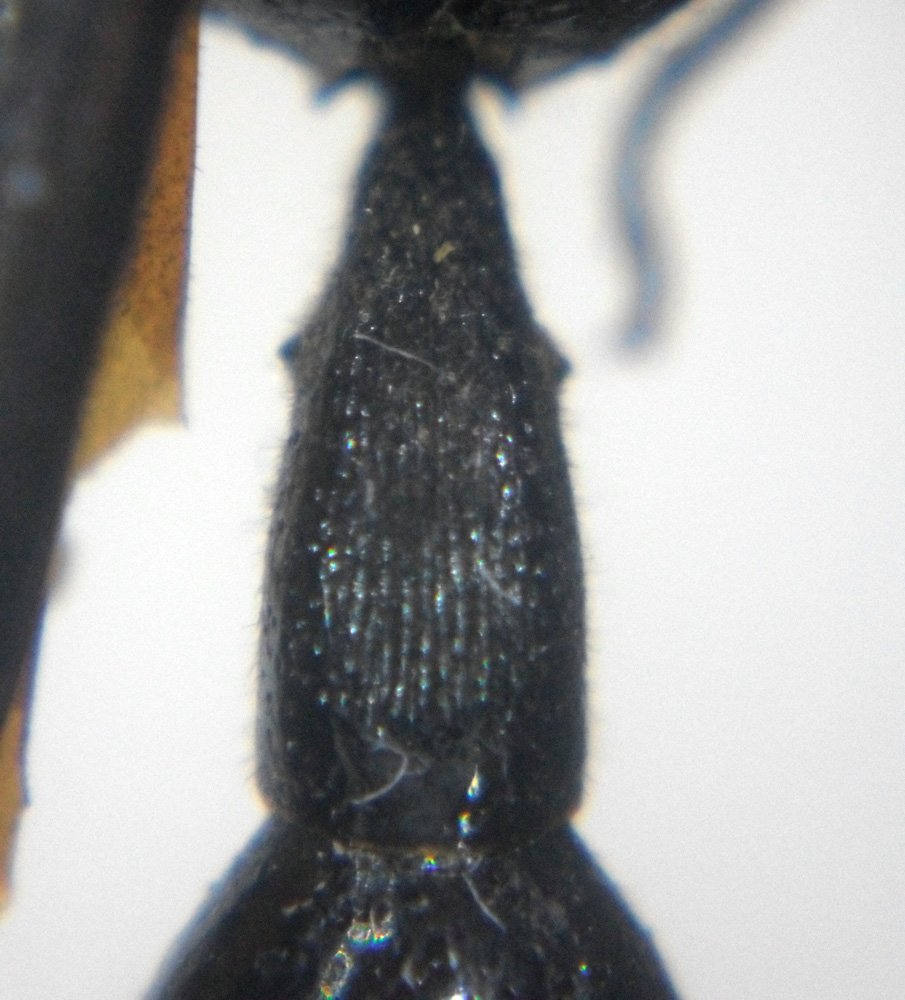 Altro interessante Eumenino filippino. Il genere Pseudozumia è diffuso nella zona Indo-Malese con 10 specie, di cui solo una presente nelle Filippine: Pseudozumia gracilis. Questa si differenzia facilmente per la colorazione completamente nero brillante con solo due puntini gialli all'apice del propodeo che a volte possono mancare. Una caratteristica di questo genere che mi ha colpito è la presenza sul primo tergite di una zona striata longitudinalmente.