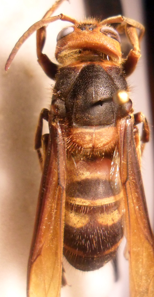 E con questo abbiamo sul forum tutti e tre i calabroni del gruppo tropica (tropica, philippinensis e ducalis), specie caratterizzate dal primo tergite allungato e il clipeo con due denti appuntiti sul margine ventrale.