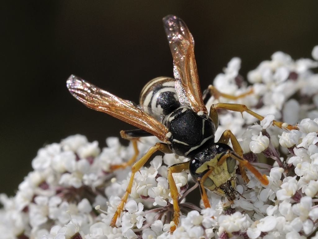Polistes dominulus. L'intensità della colorazione non c'entra niente con l'identificazione. Evidentemente è un gene recessivo che è saltato fuori a caso, non trasmissibile geneticamente, che per quanto ne so io riguarda solo i maschi...
