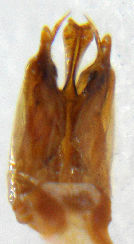 Come avevo anticipato QUI sono in possesso anche di un maschio di Apoica. La chiave che ho a disposizione purtroppo prende in considerazione solo le femmine ma in compenso ci sono delle ottime foto dell'apparato genitale maschile di alcune specie...scomposto! Infatti per determinare i maschi bisogna letteralmente aprire in due i genitali per a vedere senza problemi digitus e parameri. Mi sono esercitato un po' con alcuni maschi di Polistes dominula e infine mi sono deciso a sezionare i genitali di questa Apoica: risultati ottimi, si è solo un po' danneggiato l'apice dell'edeago ma fortunatamente non è un carattere importante :D