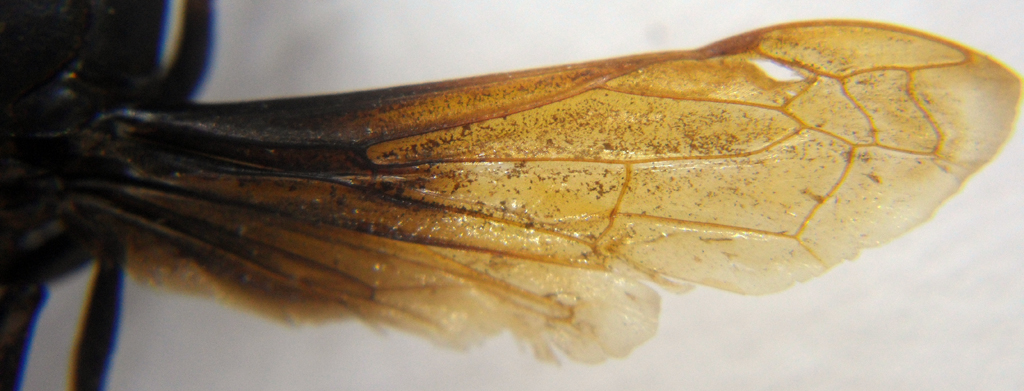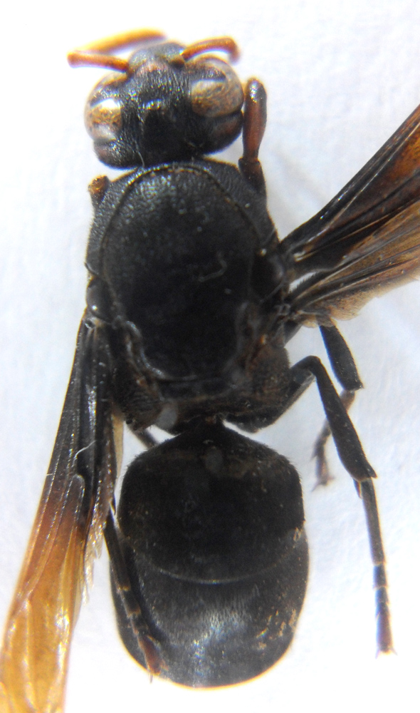 Si tratta di una femmina di Rhynchium atrissimum, specie caratterizzata dalla colorazione completamente nera, eccetto le antenne arancioni, e lo scutello poco punteggiato.