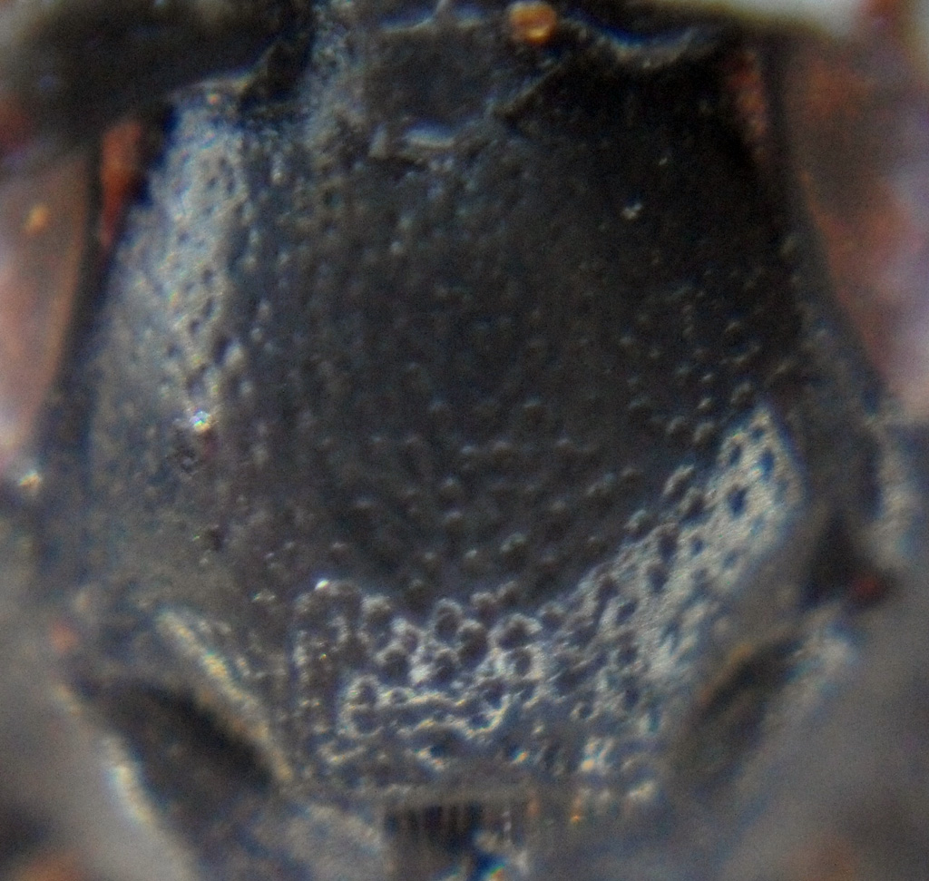 Questo bel maschio di Vespa filippino mi ha fatto dannare per arrivare alla specie. Seguendo le chiavi ho incontrato infatti vari problemi, ad esempio un passo chiedeva se l'occhio sinistro è a contatto o meno con il clipeo e io ero sicurissimo fossero a contatto, solo un crop di una foto mi ha fatto vedere che era presente una sottilissima striscia che li separava. Risolti i vari problemi arrivavo a V. tropica che però è caratterizzata dal secondo tergite arancione, quindi l'esemplare è rimasto fino ad ora determinato come Vespa sp. Oggi per caso ho ritrovato nel mio archivio un lavoro che include una chiave per le sottospecie/varietà di V. tropica e ho scoperto che l'esemplare appartiene alla varietà anthracina che è tipica delle Filippine e completamente nera :no1: