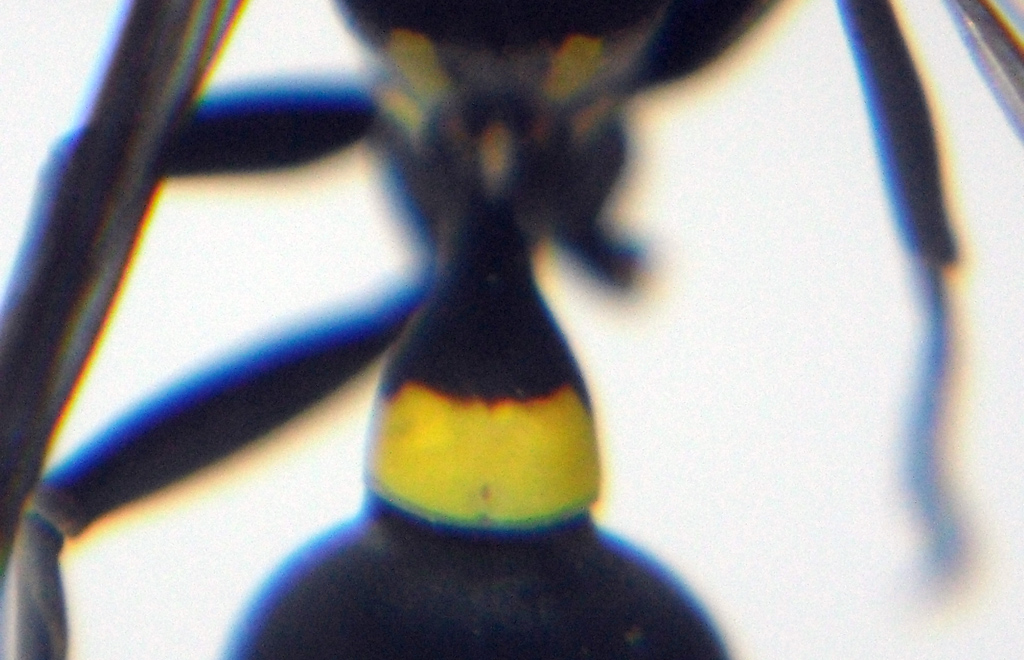 Il genere Polybia è endemico del Sud-America ed è uno dei pochi Vespidi in grado di produrre del miele. A differenza di altri Polistini come Polistes ed Apoica non crea nidi formati da un solo ripiano scoperto, ma formati da più ripiani protetti da un rivestimento esterno. Attualmente conta una settantina di specie ma vengono continuamente descritte nuove specie mentre altre vengono messe in sinonimia, quindi il numero varia spesso. Questo esemplare è una operaia di Polybia occidentalis, specie che molto probabilmente è in realtà un gruppo di specie. Ringrazio James M. Carpenter per avermi fornito la bibliografia per determinare l'esemplare e per aver confermato la mia determinazione come P. occidentalis 8,5mm |