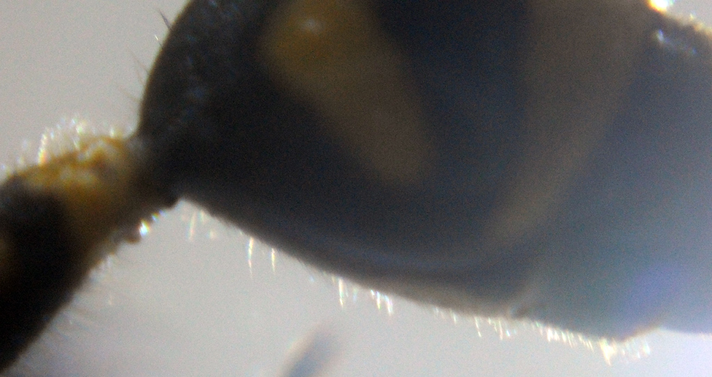 Questa specie, che ancora non avevo, è l'unica in Italia ad avere il secondo sternite ricoperto da lunghi peli(che ho provato a ritrarre in foto ma con scarsi risultati) e non da una pubescenza brevissima.