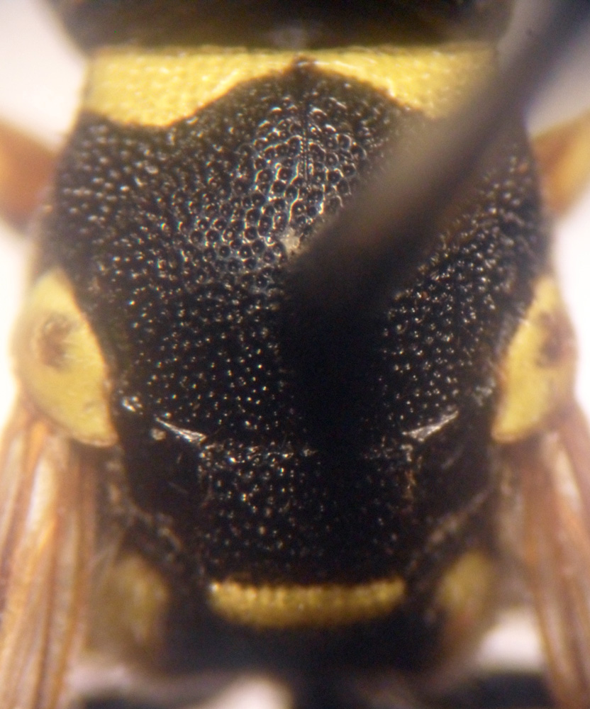 Recentemente Umberto/Umbro mi ha mandato in studio alcuni Eumenini della sua collezione. Tra di essi vi era anche questo maschio di Allodynerus floricola, specie che non avevo mai visto. Si distingue agevolmente dai maschi delle altre due specie italiane per le chiazze gialle isolate sul secondo tergite e per la forma del clipeo.