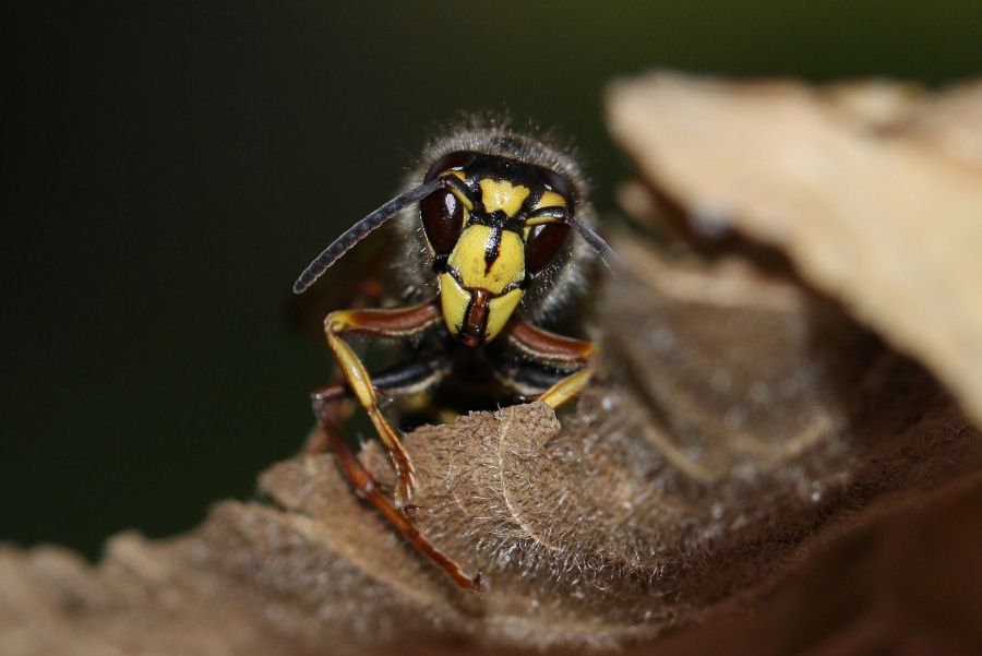 Ho trovato questa vespa attaccata ai miei pantaloni mentre stavo sotto un albero di Catalpa. Era molto grande, più grande di una vespula germanica, ma un po' più piccola di un calabrone. Suppongo si tratti di una vespula, ma non ne ho mai viste di questa colorazione - appariva molto scura. Anche una ricerca sul web non ha portato a qualche risultato :? Mi potete aiutare?