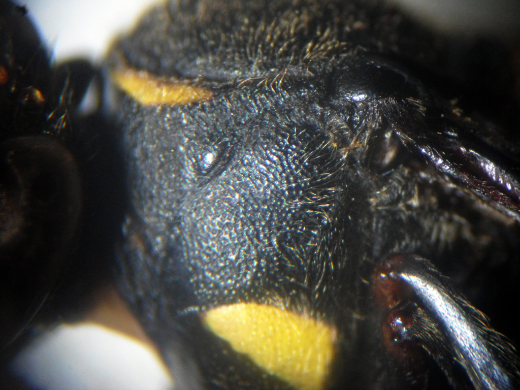 Eustenogaster scitula è uno Stenogastrino diffuso in India, Vietnam, Myanmar e Malesia peninsulare ed è una delle due specie presenti in Vietnam. Si distingue per la parte dorsale delle mesopleure densamente punteggiata, il secondo tergite fortemente convesso dorsalmente e il clipeo con una macchia gialla a forma di T. Questa è la femmina Questi invece sono due particolari del maschio, per mostrare il disegno clipeale più esteso e le mandibole tridentate, carattere proprio di sole 4 specie all'interno del genere Eustenogaster(tutte le altre le hanno monodentate). |