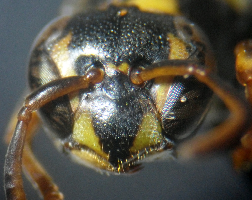 Si riconosce per il secondo tergite senza macchie rossastre, il mesoscuto con solo due sottili linee gialle e per il clipeo giallo con una larga fascia nera mediana che dal margine posteriore arriva all'apice.