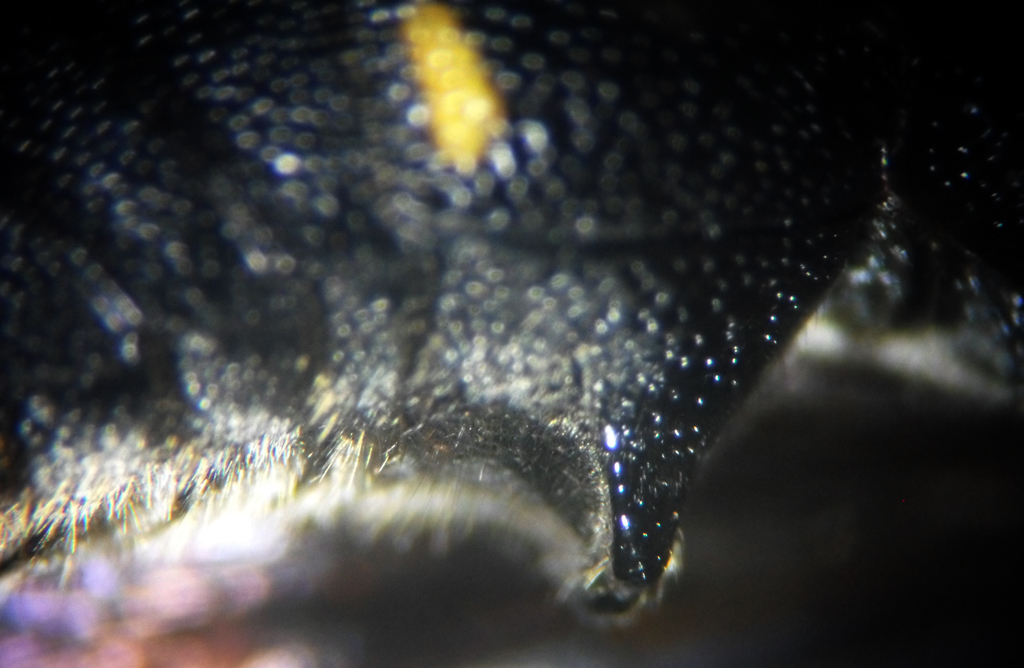 Allorhynchium quadrimaculatum è una specie il cui maschio è facilmente identificabile per le chiazze gialle sull'addome(negli esemplari tipici quattro, ma il mio esemplare ne presenta solo due), il clipeo quasi interamente giallo, la grossa lamella sul secondo sternite e i due piccoli cornetti sul settimo sternite.